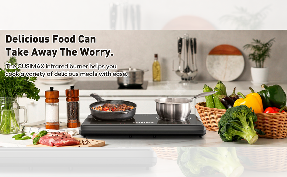 • 【9 Temperature Controls To Meet Different Cooking Needs】Double electric stove with 900w+900w of high power.9 Power Level 100w to 900w.CUSIMAX Countertop Stove to be heated uniformly;provides quick heat-up and greatly reduce cooking time,more efficient than traditional gas,saving time and energe!Easy to frying, boiling,steam,slow boiling and so on