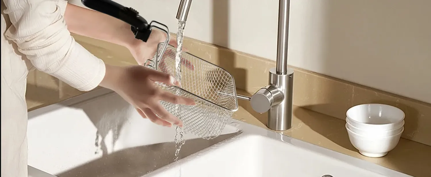 Make cleanup a cinch, Stainless steel housing and non-stick inner container, just clean it with foam water. Basket and lid are dishwasher safe or hand wash.