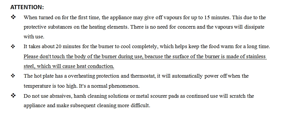 All Cusimax products have passed ETL certification and meet safety standards. Cusimax countertop cooktops feature an automatic safety shut-off. When you step away from the hot plate for a long time, the panel will start to burn dry, then the auto shut-off will turn on for overheat protection. In addition, the non-slip feet ensure that the unit stays firmly in place.