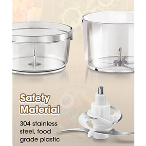 • MULTIPLE DEFENSES -- The blade is 304 stainless steel, the bowl is food-grade plastic, and all food-contact parts are made of safe materials. Features a child lock to prevent accidental contact and triangular alignment of the main body and drive cover for proper start-up