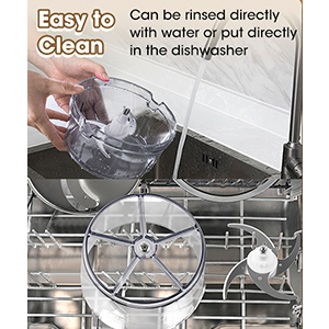 • EASY TO CLEAN -- Except for the main unit, so the accessories can be rinsed directly with water or put into the dishwasher. Because the blade is very sharp, so please be careful when you take the blade. You can put it into the knife cover when not in use