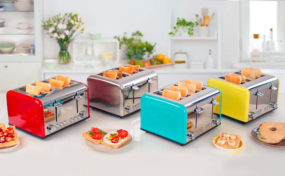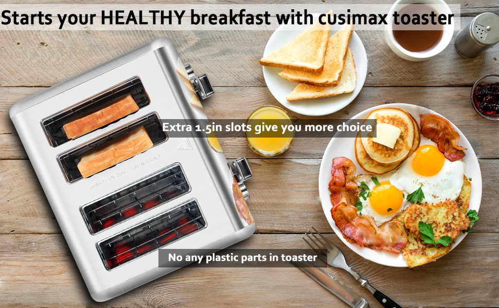 Cusimax 4-Slice Toaster has a long 5.5-inch slot and a wide 1.4-inch slot to accommodate a variety of breads, making it perfect for whole breads, bagels, burgers, and more. Bottom crumb tray is removable for easy cleaning.
